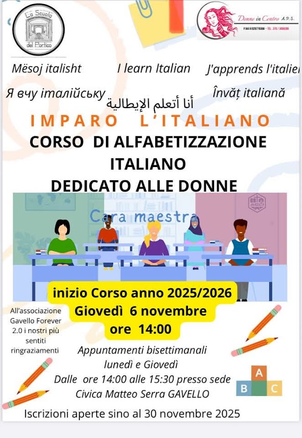 Dal 6 Novembre a Gavello – Imparo l’italiano – Corso di alfabetizzazione italiano dedicato alle donne