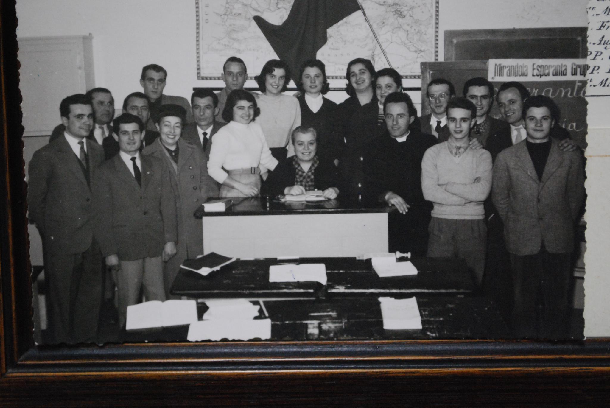 La prima foto è datata 1957 e ritrae un gruppo di allievi della scuola di Esperanto di Mirandola (per gent.conc.di Osiride Bastianelli)