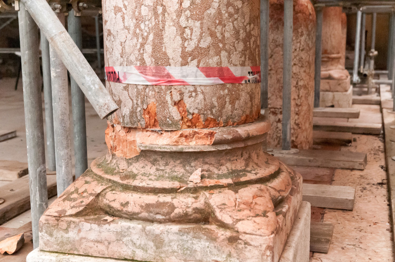 Nel 1841 per una forte pendenza dell’edificio avviene un primo restauro sulle colonne di marmo (piombatura).