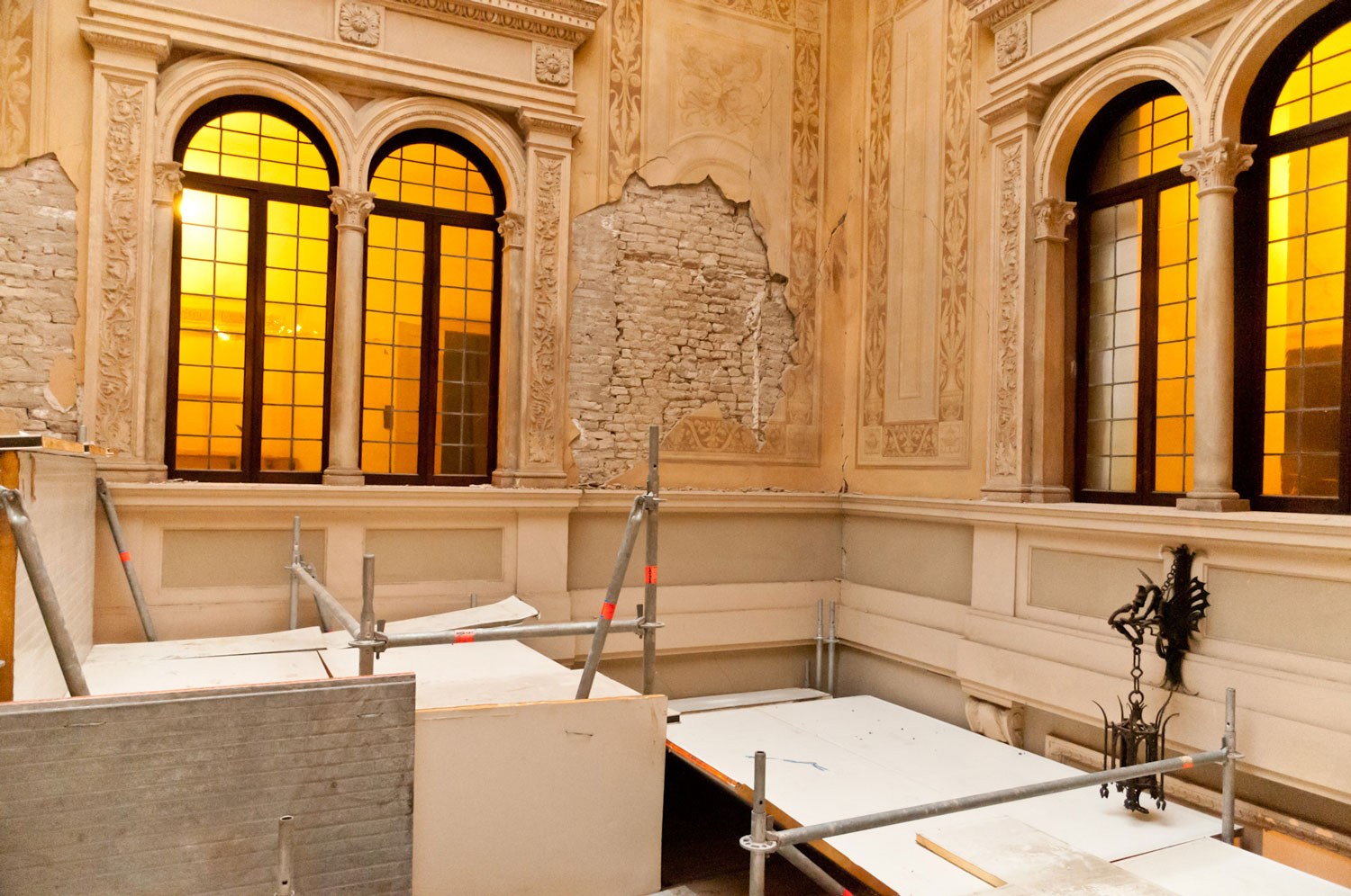 Come tutti sanno le due scosse di terremoto hanno apportato gravi danni al nostro Municipio (grazie all’Archivio Comunale di Mirandola siamo in grado di documentarvi con immagini fotografiche realizzate da Giancarlo Polacchini) ma forse non tutti sanno che nell’arco dei suoi 545 anni la Loggia dei Pico è stata più volte restaurata.