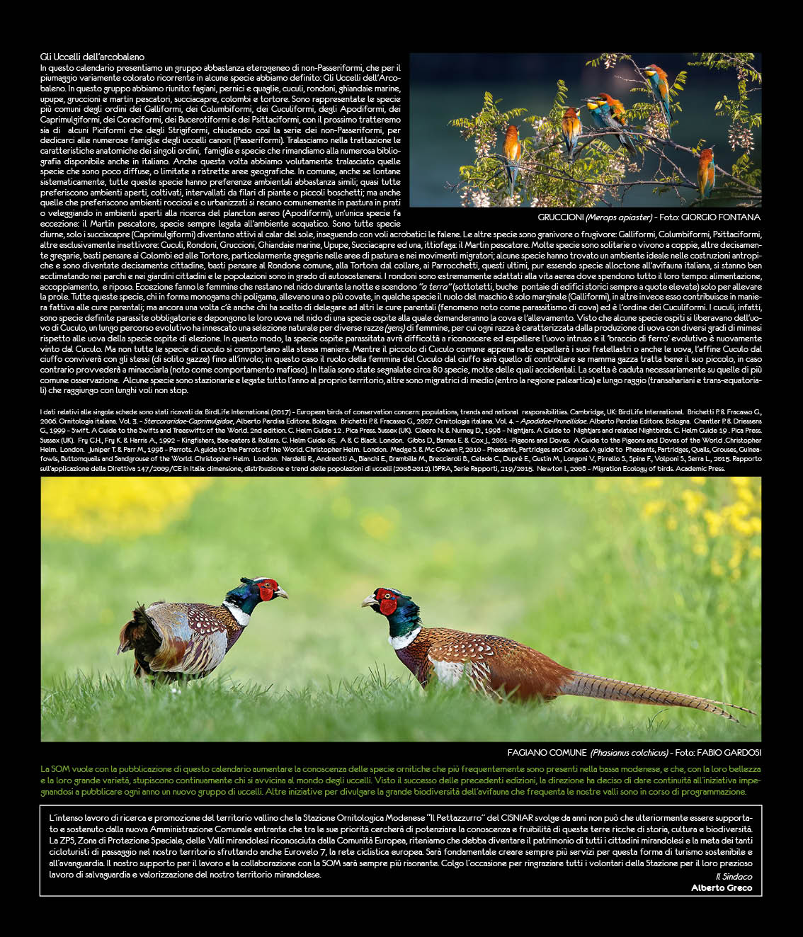 Da sette anni la nostra associazione realizza un calendario fotografico/ornitologico con lo scopo di raccogliere fondi per le attività di ricerca che svolgiamo e per manutenere la piccola Oasi sulla quale risediamo. Quando siamo partiti con questa idea non pensavamo che sarebbe presto diventato un importante strumento di divulgazione atto a calamitare verso l’associazione numerosi appassionati sia di fotografia naturalistica che di ornitologia e birdwatching.