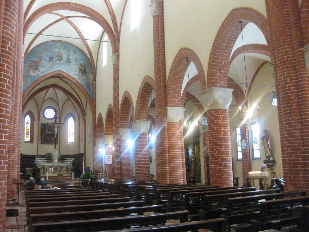 Il campanile alto 48 metri è stato rialzato nel 1888-1889 ed ne è stata rifatta la guglia terminale. Delle originali pitture interne non vi è rimasto nulla.