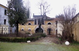 L’attuale via Oberdan si estende da via rotta di Po alla via Trento Trieste, ma fino al 1935 essa si fermava a via Monte Grappa in corrispondenza dell’orto annesso al Convento di S. Chiara. E’ una delle strade che hanno supportato l’espansione dell’abitato di Finale a seguito dell’abbattimento delle mura che fino alla metà del Cinquecento circondavano il nucleo originario. Anche l’antica denominazione di “strada dietro la foza”, presente nella mappa di Ippolito Alinovi del 1654, ricorda che la via nacque appunto in corrispondenza dell’antico fossato adiacente le mura settentrionali del borgo medievale. In questa via troviamo la casa in cui nacque l’abate Cesare Frassoni, il Palazzo Borsari di Final Vecchio, attualmente coperto da ponteggi, nel cui piano nobile sono presenti alcuni vani di particolare interesse come il “teatrino” o la “camera dell’alcova” poi adibita a cappella, il Palazzo Cassetti col suo elegante portale settecentesco nell’androne passante del piano terra e Palazzo Ramondini ora Molinari, che compare già in una mappa del 1725, le cui linee architettoniche della facciata fondono connotati stilisticamente più antichi (basamento a scarpa) con innovazioni settecentesche (cornicione a guscio) e successive (cornicione a beccatelli, modanature nei soprafinestra al piano nobile), che rimandano al coevo palazzo Bresciani di via Saffi.