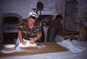 Dopo un’ora circa il volume risulterà raddoppiato. A questo punto guastate e sgonfiate la palla di pasta reimpastandola. Maneggiate energicamente la pasta per qualche minuto. Dividete l’impasto ottenuto in 12 pezzi uguali di pasta e fatene 12 panini della forma che desiderate. Potrete fare dei panini oblunghi: in questo caso col coltello incidete la superficie superiore con alcuni tagli trasversali. Potrete anche stendere la pasta di ogni pezzo allo spessore di mezzo centimetro per poi arrotolare la pasta ottenendo una specie di cornetto. In questo caso non incidete la superficie della pasta. Un tempo, unendo due di questi cornetti per la parte mediana o accavallandoli al centro, si otteneva la ciòppa d’ pan (la coppia).
