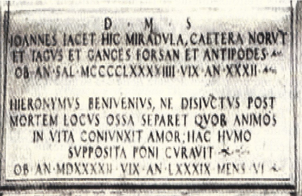 IOHANNES IACET HIC MlRANDULA, CAETERA NORUNT ET