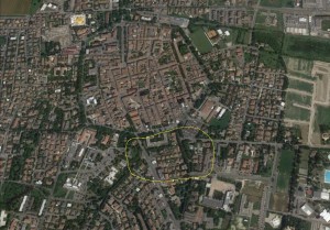 Un simile evento, che sarebbe stato frequentato da numerosi commercianti, sia locali che provenienti da altre località con relative merci e mezzi di trasporto e da tutta la popolazione del territorio e dintorni, non poteva certo essere organizzato nella pur ampia piazza della città. Così venne cercato un luogo adatto che fu trovato a sud e fuori dalle mura, esattamente nella zona compresa tra il baluardo del Bonaga (oggi si direbbe all’uscita di via Pico) e, più o meno, dove inizia via del Mazzone. Qui c’era un’ampia spianata che serviva in caso di ostilità ad impedire che il nemico si avvicinasse di nascosto e che avrebbe accolto comodamente anche saltimbanchi, giocolieri, giostre e teatrini itineranti.