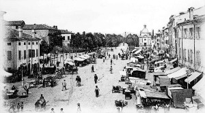 l’edicola ad banda al Teatar Nov, enca se a sarev mei aver ancora la torr con l’arloi