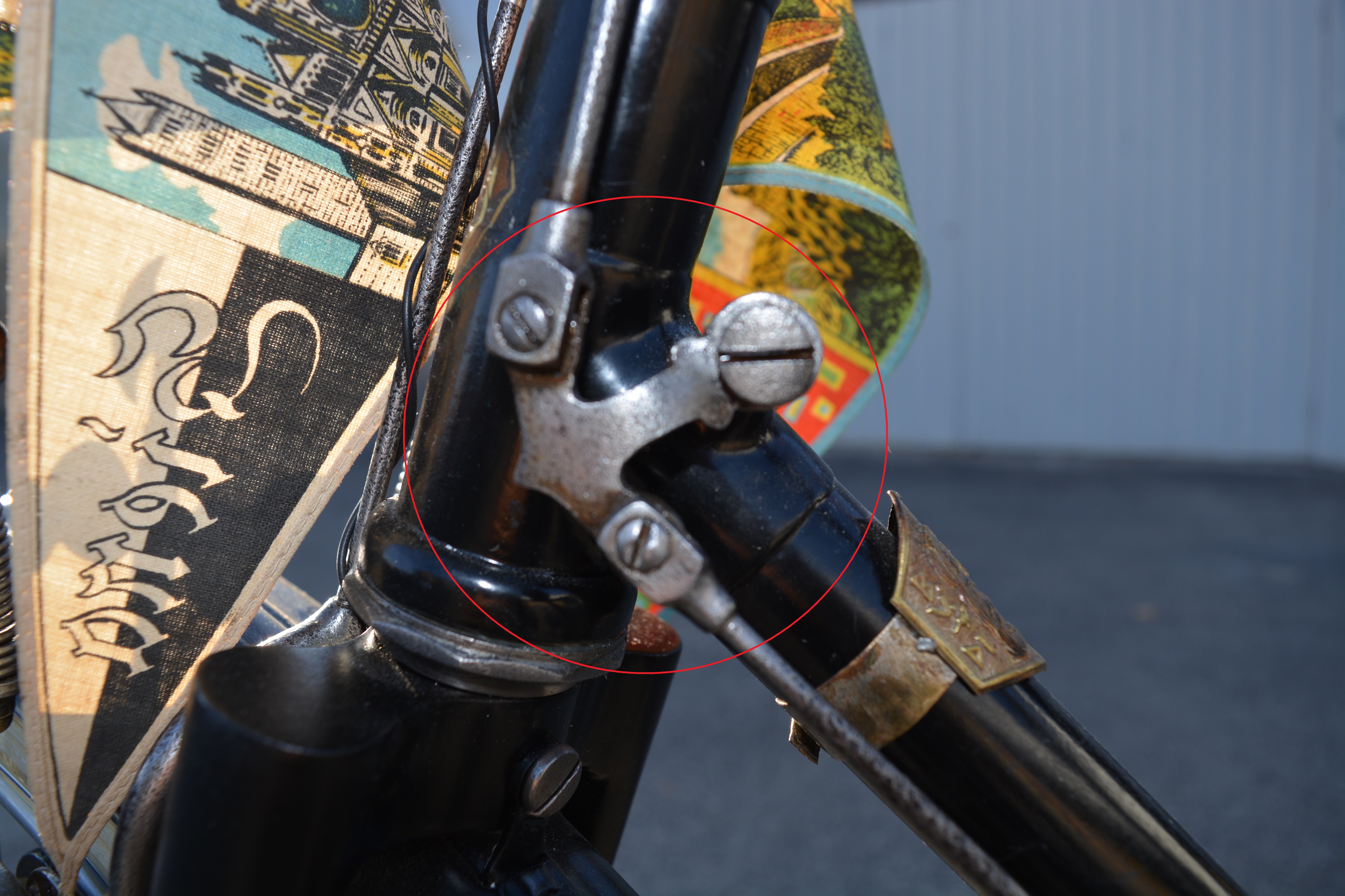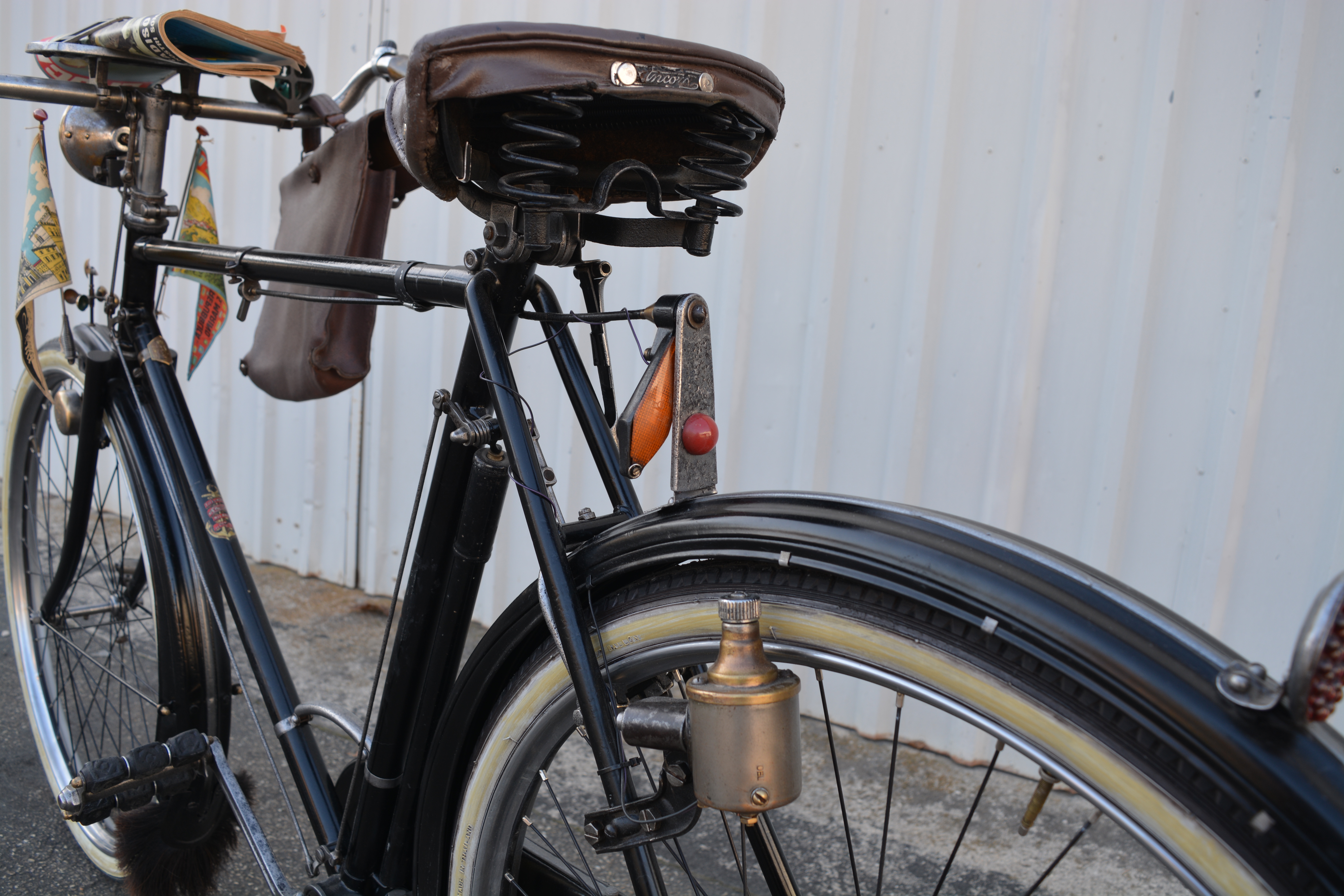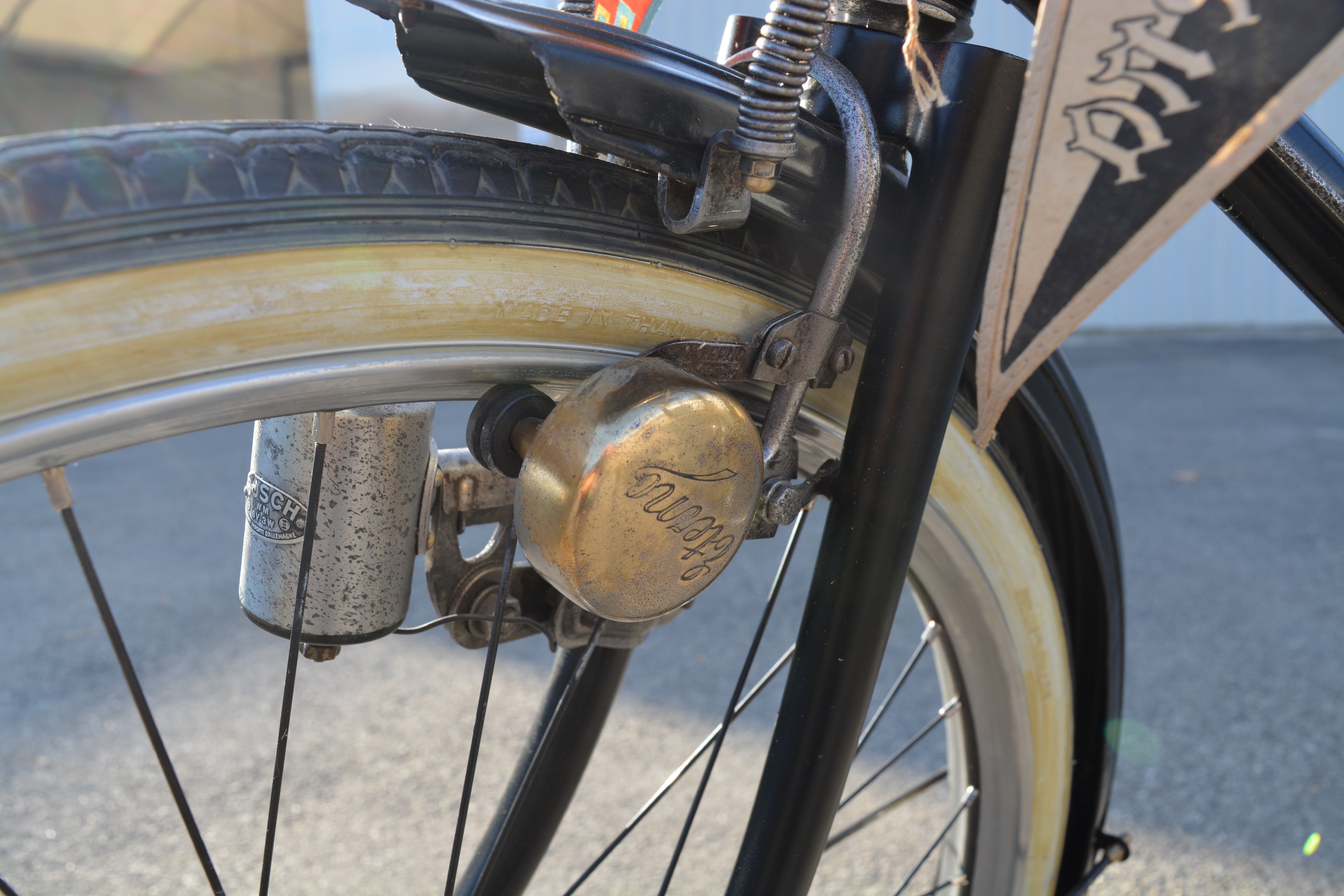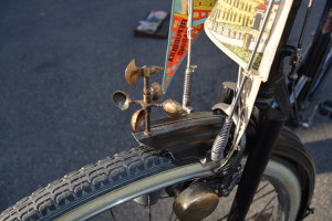 Due bandierine completano l’addobbo del parafango anteriore, su due aste a molla per meglio sventolare durante la corsa. Uno speciale campanello, “Eterna”, è fissato sul freno della ruota anteriore per suonare durante la frenatura e avvisare così eventuali pedoni sulla strada, sulla stessa ruota c’è anche un contachilometri con una meccanica ingegnosa, azionata da un piccolo ingranaggio ad ogni giro della ruota.