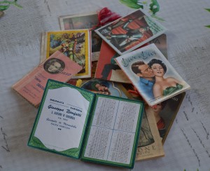 Oggi quella stessa borsa contiene un altro piccolo gioiello che apparteneva ad Angiolino e che farebbe impazzire i collezionisti di oggetti d’epoca. Una montagna di calendarietti pubblicitari che venivano regalati dai negozi, soprattutto i barbieri, dagli anni ’30 al primo dopoguerra, di cui Angiolino faceva incetta.
