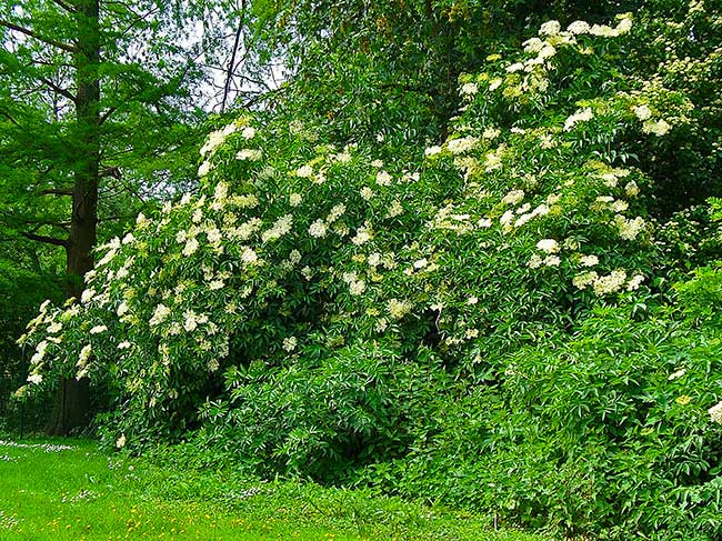 Ho già detto che la villa Delfini era circondata, su ogni lato, da una alta siepe ed in particolare quella fronteggiante il tratto stradale della via Dosso appariva ricca di arbusti variegati che producevano bacche dai colori vivaci. Ed è proprio riferita alla siepe la seconda frase di questo mio personale ricordo:«Livio! Venat mégh a villa Delfini par tór al sambugh?». Questo invito era pronunciato da Tilio [Attilio], mio vicino di casa, oltre ad essere un caro amico nonostante la nostra differenza di vent’anni di età. Bisogna dire che era come invogliare “ un ôch a bévvar” . Accompagnavo, sempre in bicicletta, Tilio alla villa Delfini, dove a fianco del cancello d’ingresso della corte, anzi di lato alla colonna in destra, si ergeva un bellissimo ed imponente arbusto di sambuco, della specie Sambucus Nigra L. Il compito di Tilio era di tagliare alcuni rami del sambuco, quelli che si protendevano sul fosso stradale. Quindi ripercorrevamo al contrario, con il fascio di rami sulle spalle, la strada sino alla nostra abitazione. Il successivo lavoro eseguito da Tilio consisteva nel pelare la scorza, più esterna, del sambuco e di rimuovere la “seconda pelle [corteccia interna]”, in quanto solo questa costituiva l’essenza di una “miracolosa” pomata che, la madre di Tilio, di nome Santina, faceva poi bollire, con altri ingredienti, sulla stufa di casa, sino ad ottenerne un decotto che si addensava raffreddandosi. Questa pomata veniva poi versata in piccoli bussolotti con coperchio, che in passato si acquistavano in farmacia, fatti di legno di pioppo o betulla. Si ricavava con ciò un antico rimedio per le scottature da acqua bollente od altro che, frequentemente, si verificavano nelle cucine di una volta, dove era presente il camino o a causa delle tante pentole collocate sulle piastre delle stufe. Il decotto della Santina risultava effettivamente un rimedio “miracoloso” in quanto aveva la proprietà di rigenerare la pelle umana scottata, senza lasciare i tipici raggrinzimenti, “castróñ”. Si trattava di una ricetta risalente a tempi immemorabili, poco nota nei suoi componenti, ma molto efficace, per cui ricordo che diverse persone, anche dei paesi vicini, si rivolgevano alla Santina per avere una confezione della pomata. Purtroppo il dosaggio e gli ingredienti di questa medicina naturale si sono persi con la morte della signora Santina, né i familiari ricordavano alcunché del composto. Però oggigiorno le fonti di conoscenza non si tramandano solo, come in passato, da padre in figlio, ma possono essere ottenute con nuovi strumenti. Infatti “navigando” in Internet mi è stato possibile rintracciare la ricetta tradizionale, sommariamente simile a quella della Santina. Ovvero la “Pomata di sambuco fatta in casa da Benedetta [la celebre cuoca, televisivamente parlando, Benedetta Rossi di Fermo nelle Marche].