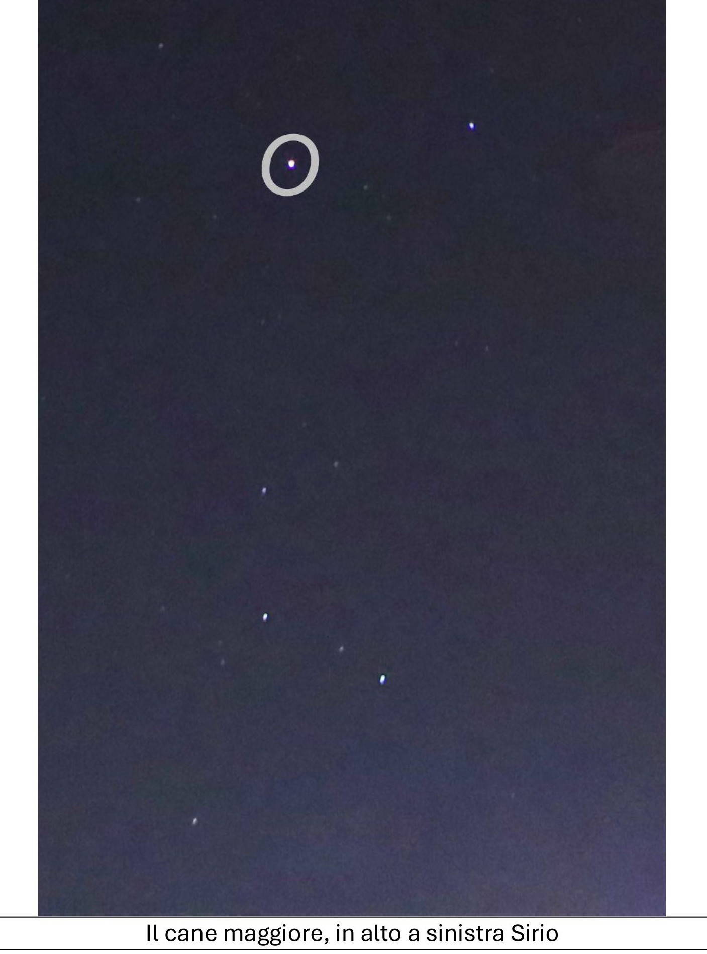 Poco più sotto Orione si può vedere la costellazione del Cane Maggiore, con una delle stelle più brillanti del cielo invernale: Sirio.