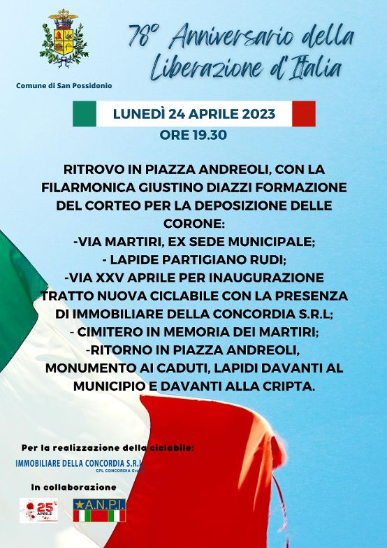 Lunedì 24 Aprile a San Possidonio – 78° Anniversario della Liberazione d'Italia