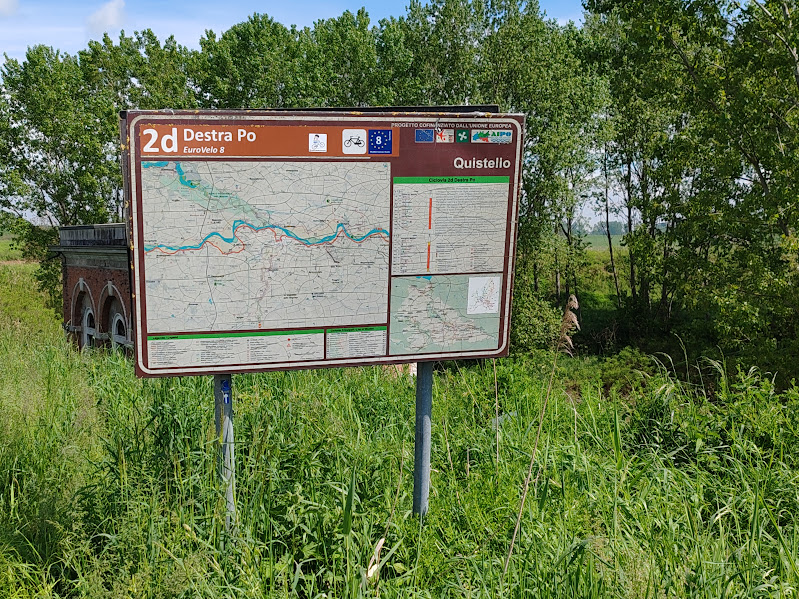 Percorriamo la ciclabile, tutta asfaltata, fino a Quistello costeggiando il fiume, quindi ci immetteremo sulla ciclabile, sempre percorso di Eurovelo7, “Destra del Po” che lascerà il nostro affluente e proseguirà sul lato destro del Po.