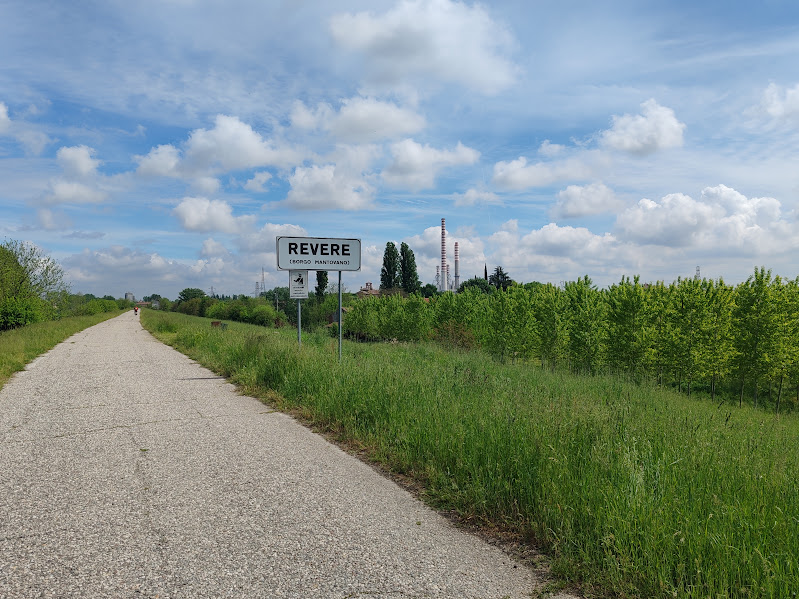 Proprio mentre l’abbiamo percorso era in piena, quindi il passaggio dal Secchia è stato davvero impressionante, purtroppo l’interno della golena non è stato possibile percorrerlo perchè allagata ma rimane sempre affascinante vederla nella sicurezza dell’argine asfaltato. Nell’avvicinarci a Revere (una veloce visita non deve mancare) una serie di piccoli parchi, per permettere ai ciclisti di riposare e la vista di una copia del mulino natante in dimensioni originali allieteranno il transito. Dalla sponda si vedrà anche la l’imponente centrale termoelettrica di Ostiglia.