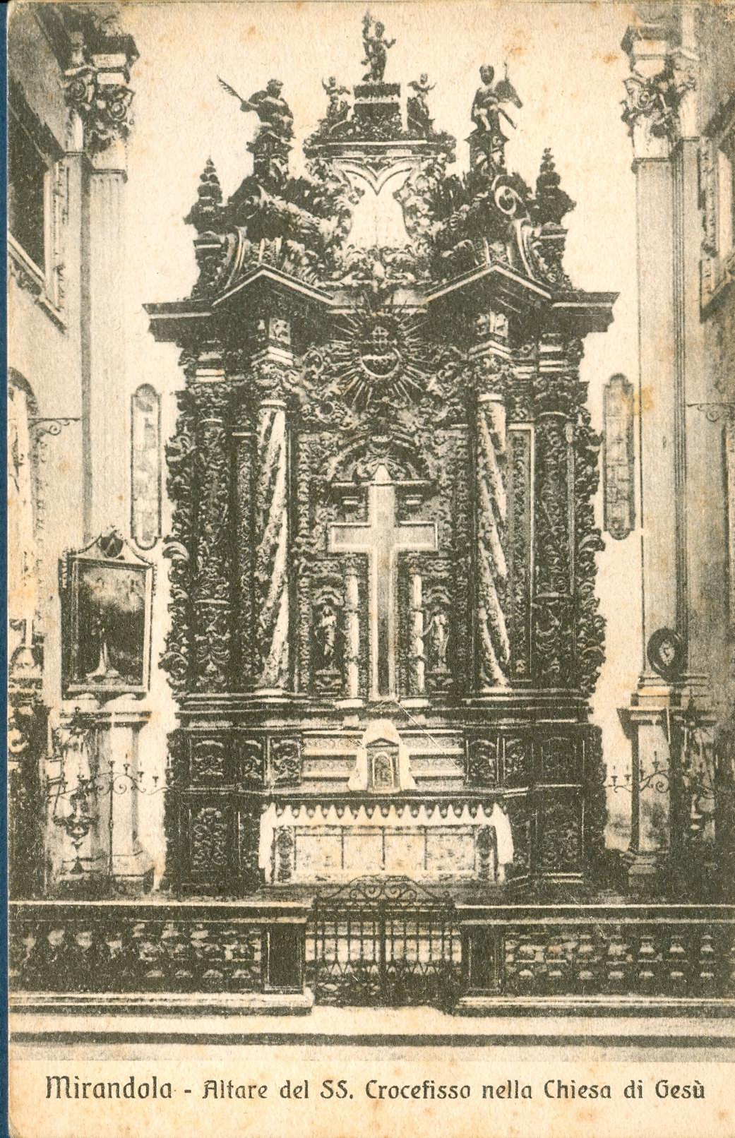 Altra chiesa mirandolese di notevole interesse è la chiesa del Gesù, iniziata nel 1621 da Alessandro I Pico e assegnata poi alla Compagnia dei Gesuiti. La facciata della chiesa è incompiuta ma l’interno è ricco di significative opere d’arte. In particolare sono di grande valore gli stucchi dello scultore Pompeo Solari, risalenti al 1680, le statue, che sono opera di Petronio Tadolini di Bologna, risalenti intorno al 1760 e infine gli altari di legno intagliato. Di grande valore artistico il Crocefisso e gli altari realizzati da Paolo Bonelli, una delle maggiori personalità della lavorazione del legno. Queste opere d’arte risalgono alla fine del XVII secolo.