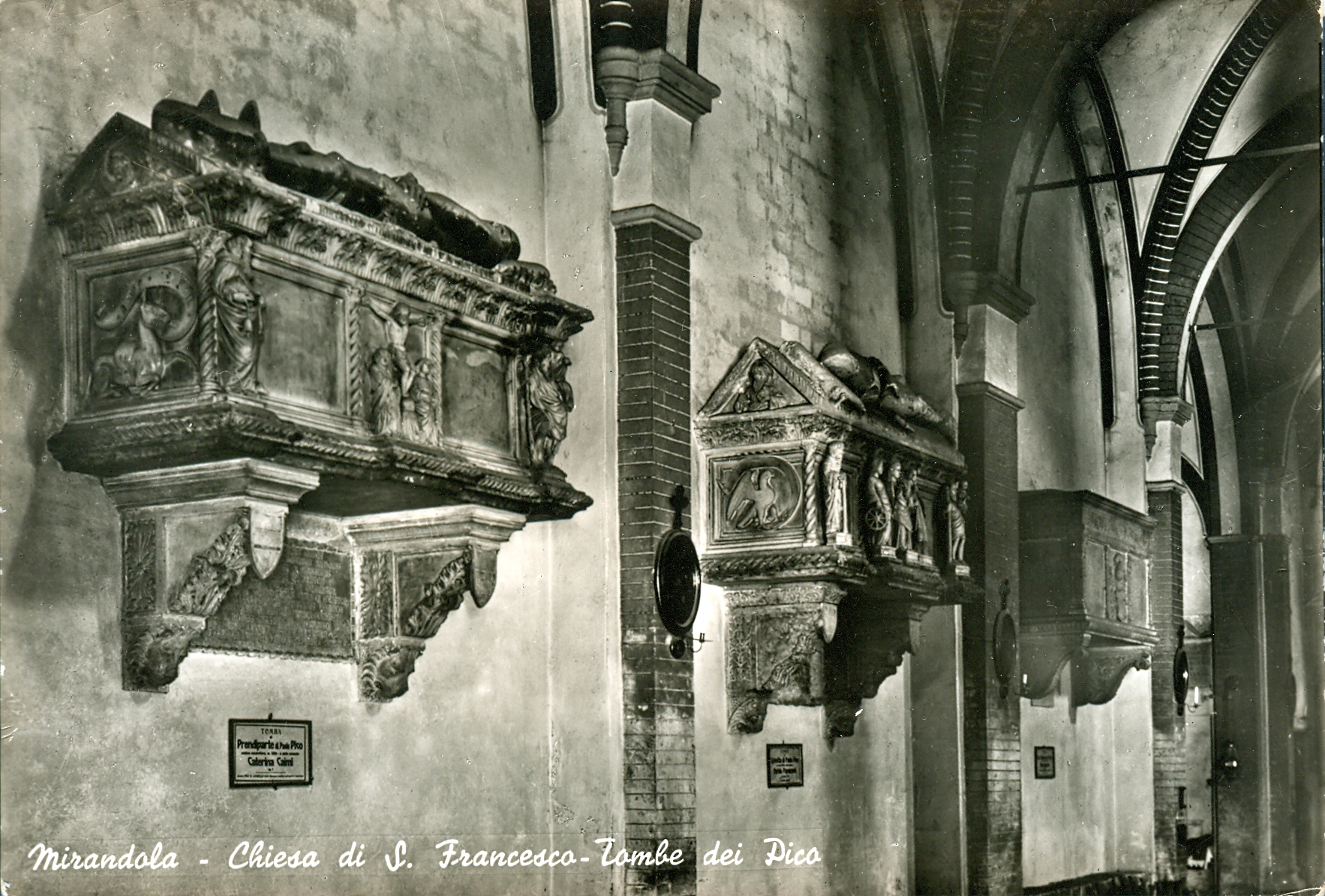 poi le famose tombe dei Pico, tutte sistemate a cassone pensile contro il muro esterno. La prima contiene le spoglie di Galeotto I Pico e della moglie Bianca Maria d’Este.
