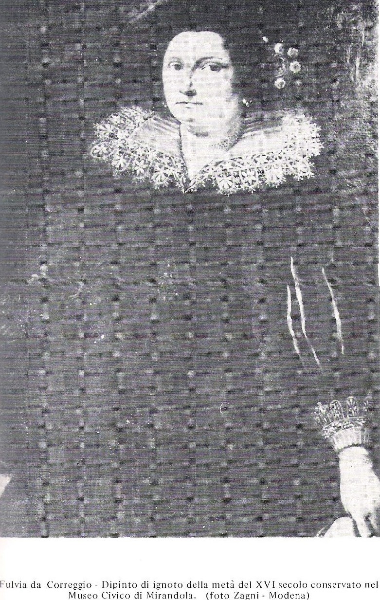 Fulvia nasce il 10 febbraio 1543 dal conte Ippolito da Correggio. Rimasta orfana a nove anni, è affidata alla nonna paterna Veronica Gambara che governava lo stato correggese. Veronica era anche poetessa e letterata e diede a Fulvia, coadiuvata in questo dallo zio paterno Cardinale Girolamo, una educazione che a quei tempi era solitamente riservata ai figli maschi della nobiltà.