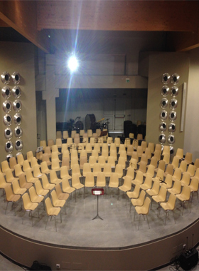 L’Aula Magna, a uso sala polivalente, sarà utilizzata prevalentemente dagli istituti scolastici, per i quali è stata realizzata ed ospiterà, in attesa del ripristino del “Teatro Nuovo”, le attività teatrali nonché tutti gli eventi e le attività culturali e sociali della comunità mirandolese.