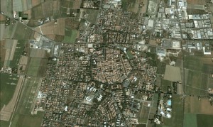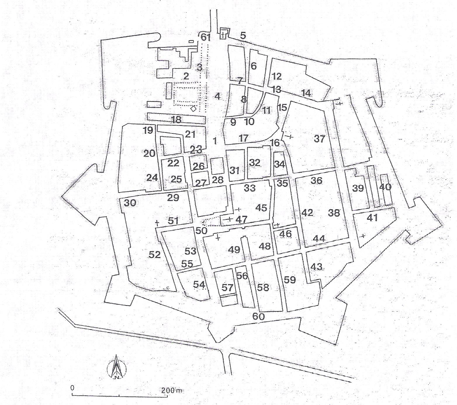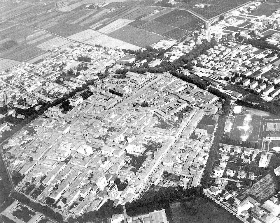 FOTO 2 – 1350 – 1460 in questo periodo l’Impresa Costruzioni Pico, avendo esagerato con le costruzioni senza tener conto del piano regolatore, si vide costretta ad allargare le fortificazioni fino ad inglobare gli edifici abusivi che si erano edificati all’esterno della città, compresa la chiesa di s.Francesco, evitando così di pagare un’enorme multa. Non vi erano ancora le mura ma argini in terra ed un larghissimo fossato cosicchè la spesa valse la candela…anche perchè l’elettricità non era ancora stata scoperta.