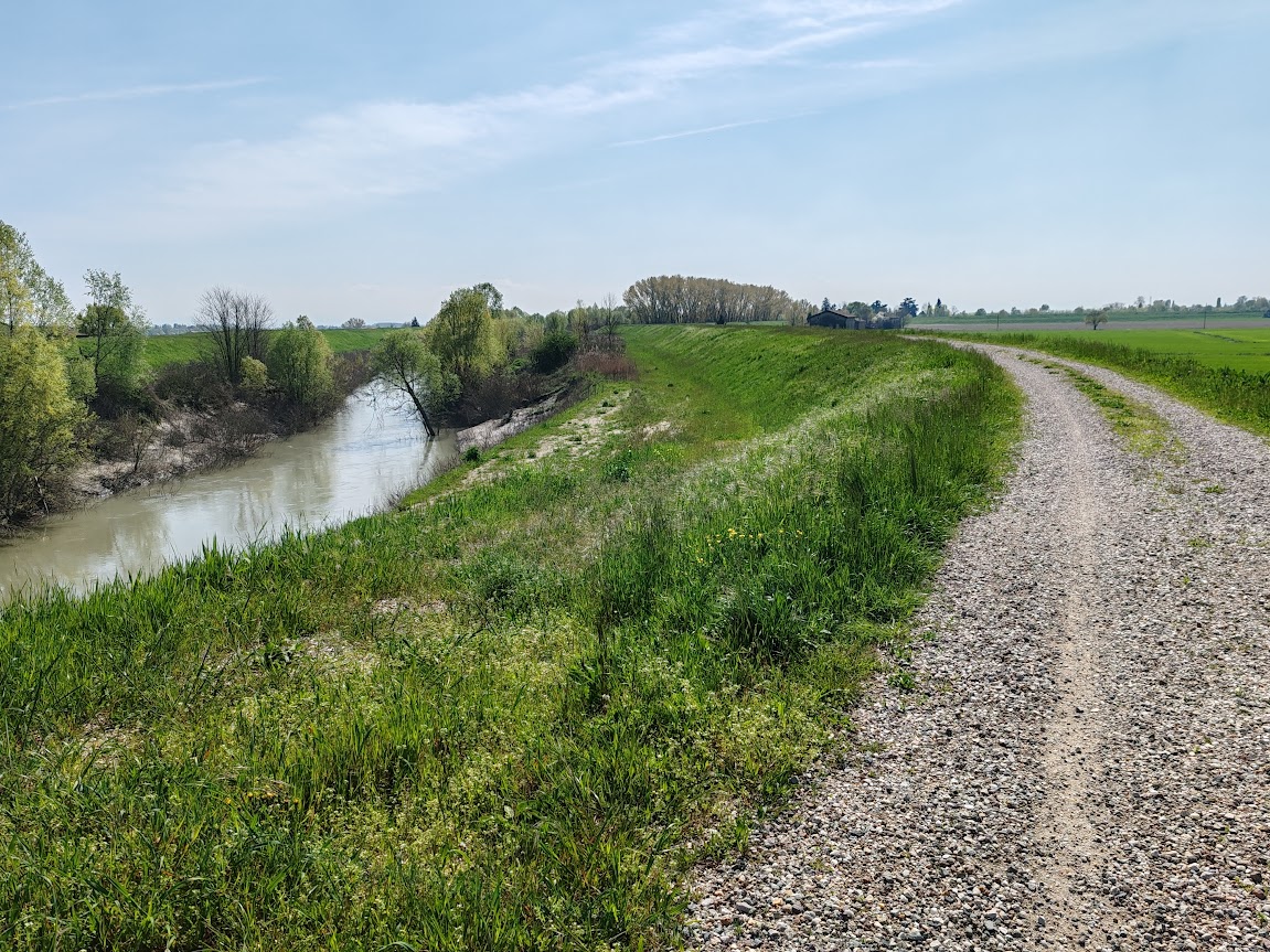 Subito dopo, salirete sulla sponda del fiume Panaro e la percorrerete, su una strada parzialmente asfaltata, fino a Solara.
