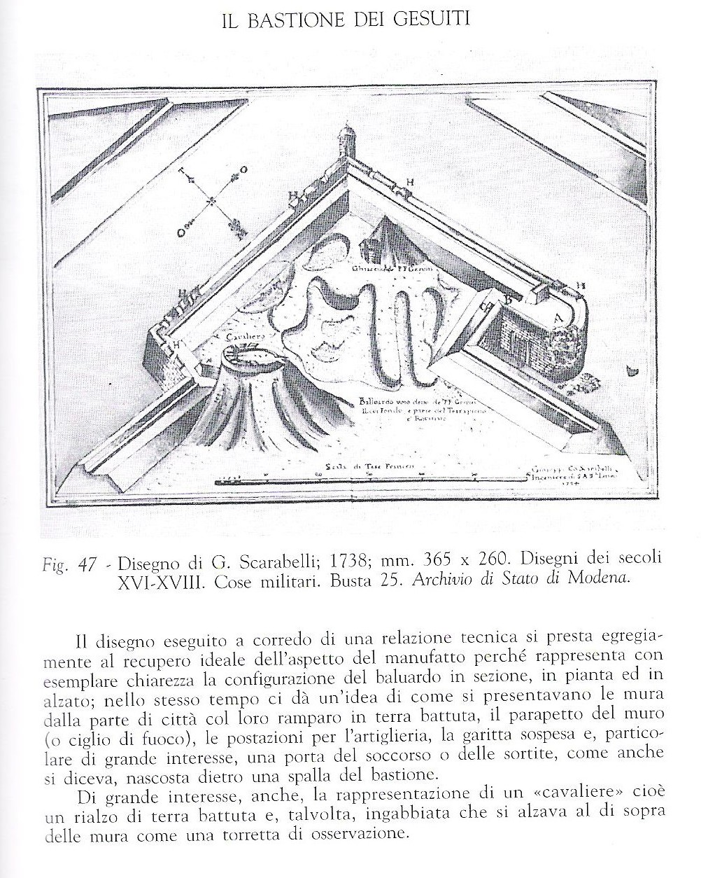 Risalendo le mura in senso orario si trova poi il Bastione dei gesuiti. Galeotto II lo fece costruire tra il 1541 ed il 1544 chiamandolo il Baluardo di S. Francesco. Esso venne poi ampliato tra il 1561 ed il 1566 e denominato nel corso del XVII secolo Bastione dei Gesuiti per la vicinanza alla Chiesa del Gesù e Convento dei Gesuiti.