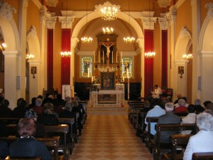 La Processione aveva percorso la via Mazzone e via Provana ora via Della Motta, e la Madonna rimase nel presbiterio dell’Altare Maggiore fino al 1738 quando terminata la bellissima cappella in Cornu Evangelii con copiose elemosine, de fedeli, ivi fu intronizzata con solenne pompa.