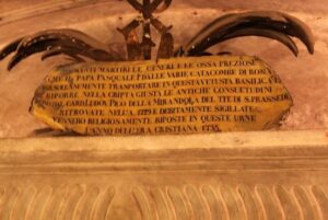 Cripta di S.Prassede – Il cartiglio al di sopra dei sarcofagi