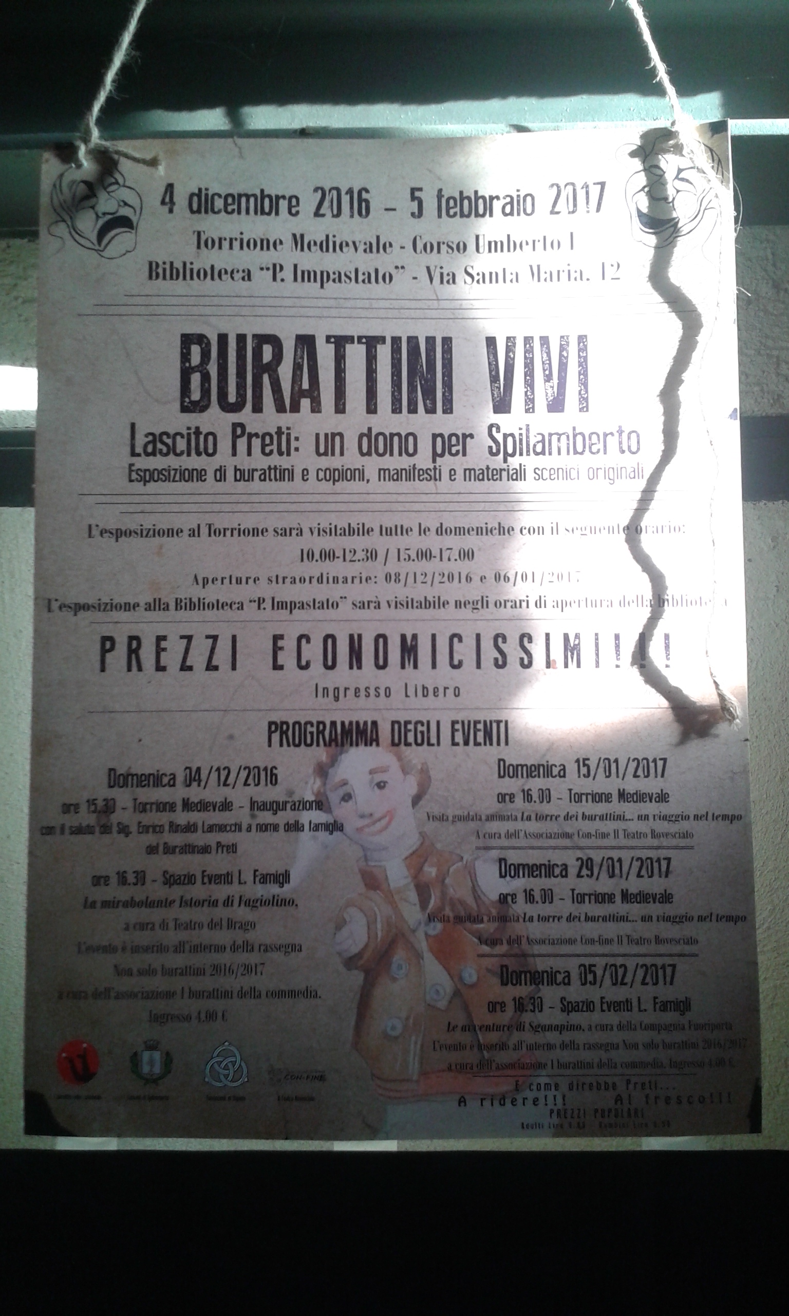 Oggi i burattini, i copioni e i fondali di Roberto Preti sono a Spilamberto e l’amministrazione comunale, in collaborazione col gruppo teatrale TEATRO ROVESCIATO Associazione CON-FINE, li ha resi visibili al pubblico grazie all’allestimento della mostra “LASCITO PRETI, UN DONO PER SPILAMBERTO”.