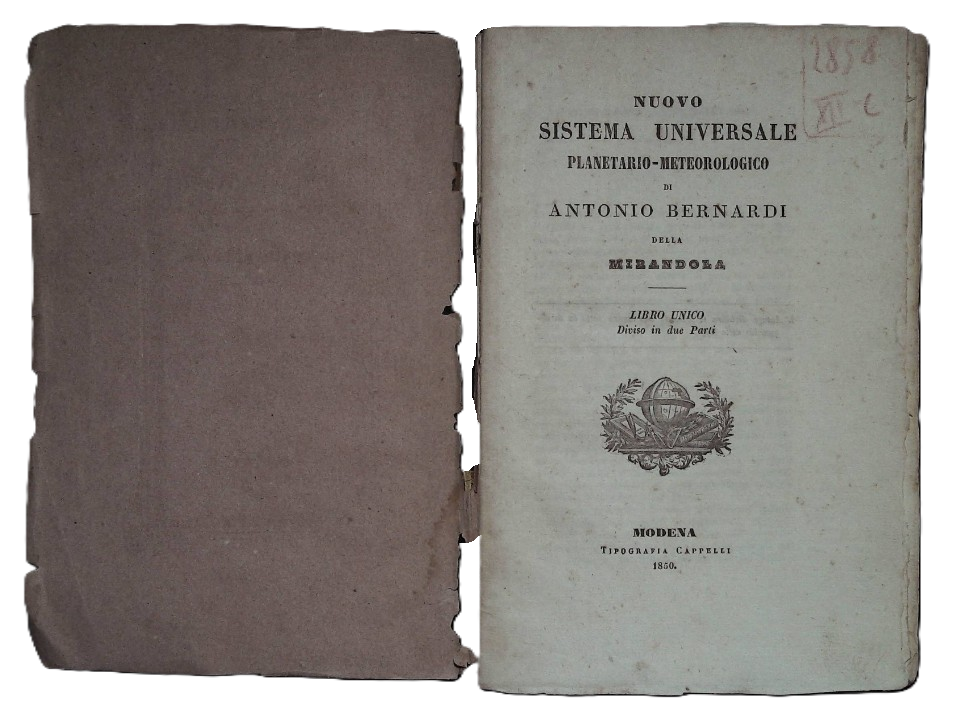 Propone la sua teoria alle massime autorità scientifiche del ducato di Modena e alla prestigiosa università di Bologna ma non viene molto preso sul serio. Allora decide di divulgarla al popolo attraverso pubblicazioni metereologiche di Bollettini Celesti in cui si firma anonimamente l’Astrologo Mirandolano. Anticipando e promuovendo così la pubblicazione successiva di un opuscolo con le prove della sua teoria: Il “Nuovo Sistema Universale Planetario Meteorologico” di Antonio Bernardi, dato alle stampe nel 1850.