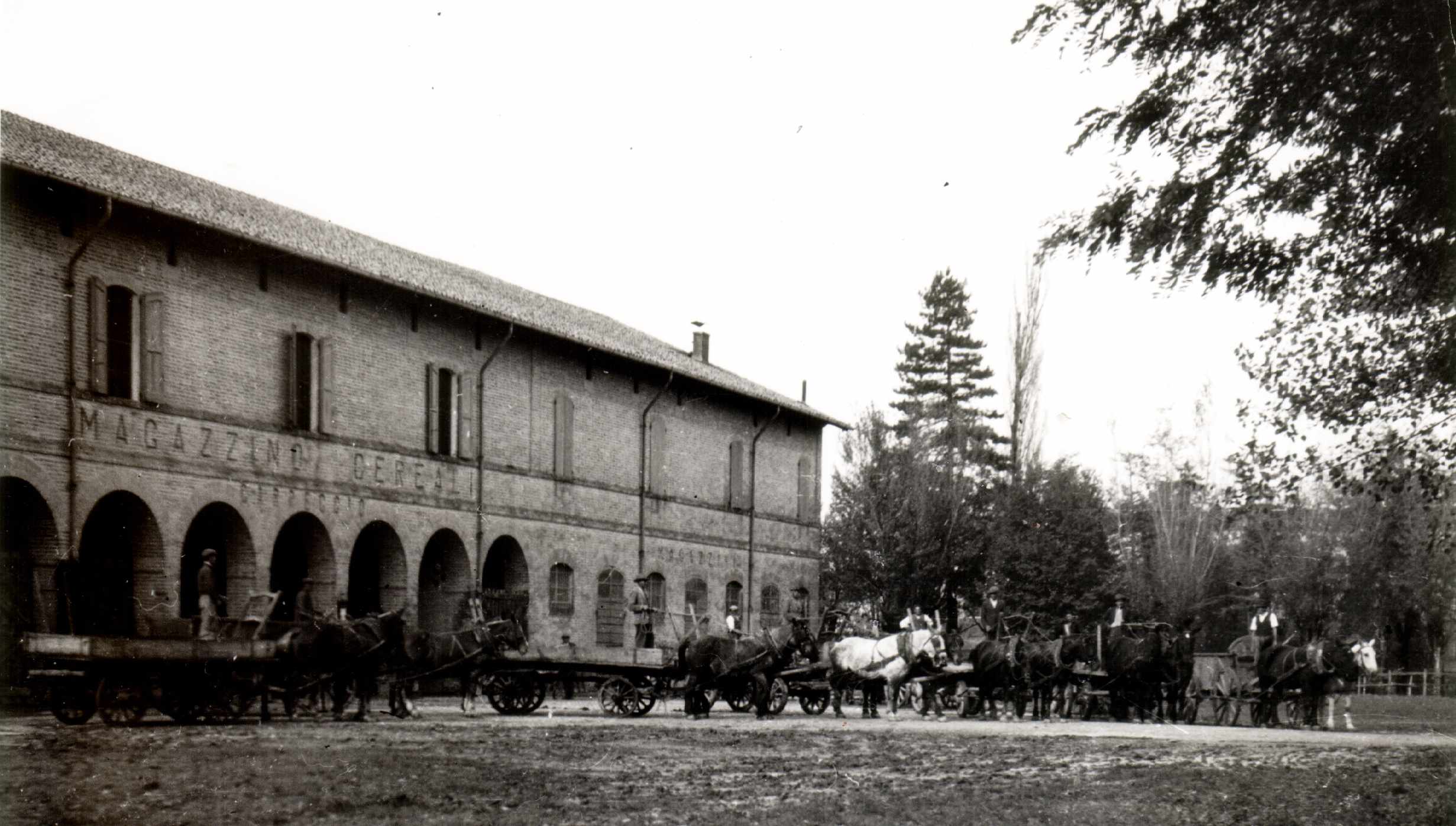 In una vecchia foto il magazzino e la partenza per il lavoro dei butteri