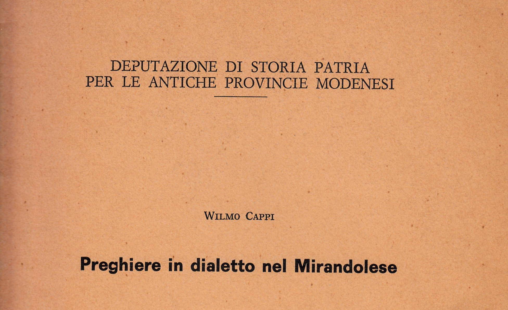 Lo studio di Vilmo Cappi, (insigne medico mirandolese con la passione per la ricerca, la storia e le tradizioni della sua città Mirandola), sulle preghiere in dialetto; punto di riferimento per i ricercatori e per tutti gli amanti della storia delle nostre radici a partire dal nostro dialetto.