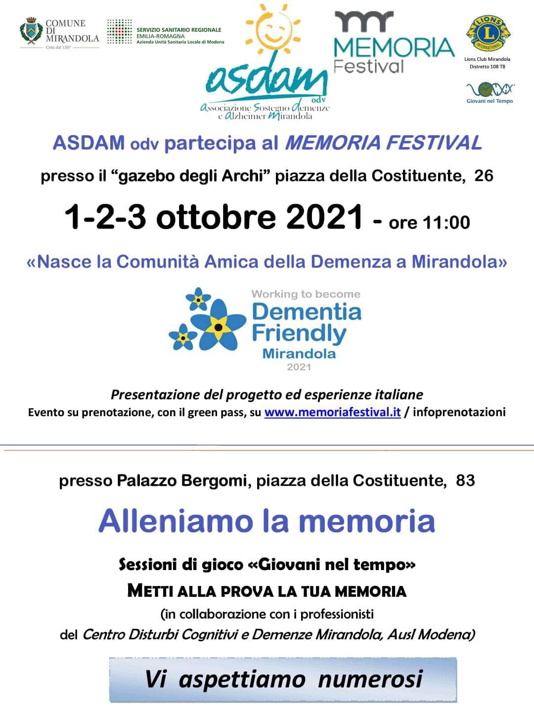 1/2/3 Ottobre a Mirandola – ASDAM partecipa al Memoria Festival.
