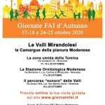 Nell’ambito delle Giornate FAI d’autunno del 18 e 25 ottobre 2020 verrà inaugurato il nuovo percorso sonoro “Sulle Valli Mirandolesi”, una visita naturalistica teatralizzata realizzata dal gruppo teatrale Koiné per il Comune di Mirandola e il Centro di Educazione alla Sostenibilità “La Raganella”. Il percorso, restaurato dalla sua prima versione del 2006, perché nel frattempo la natura, le valli sono cambiate, sono “cresciute”, vuole raccontare ai visitatori, che verranno dotati di un lettore audio e di una bicicletta, la vita dei dossi e delle valli della Bassa Modenese attraverso un percorso ciclabile. Ad accompagnare il pedalare saranno due voci che aiuteranno a riconoscere le forme, i colori, gli odori, i sapori e i suoni della valle.