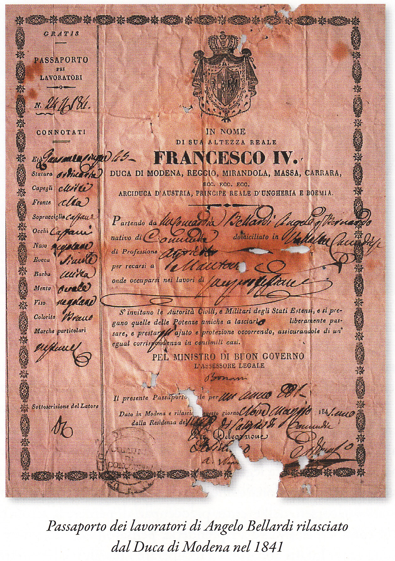 Tutti i sudditi del Duca Estense che per esigenze di lavoro, come nel caso di Bellardi che doveva recarsi a Bondanello nel mantovano per accudire il proprio bestiame, erano muniti di passaporto per poter attraversare senza problemi i posti di blocco e di controllo della frontiera fra lo Stato Estense e l’austriaco Lombardo-Veneto.