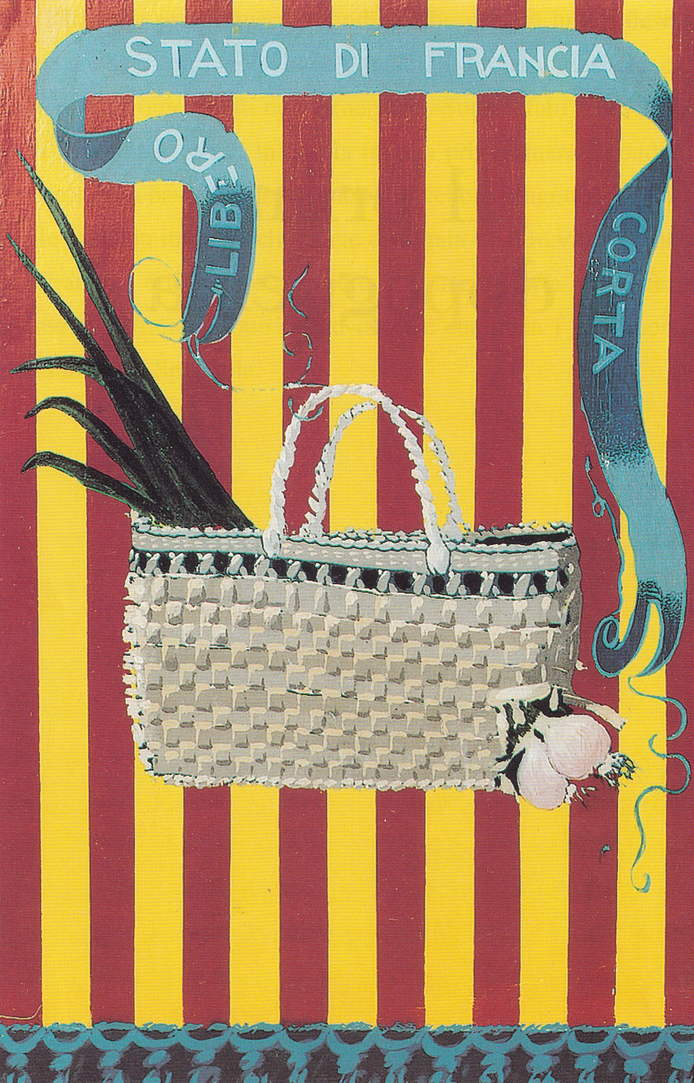 L’anno seguente, 1863, veniva alla luce lo stendardo della “Società di Francia Corta”, con il relativo timbro del “Ministero di Francia Corta”. Il vessillo della Società è quello attuale: sullo sfondo del torrione del Castello dei Pico e dello stemma della stessa famiglia, un ampio scudo accoglie una grande sporta di paglia mezza rotta, dalla quale fuoriescono alcuni cipollotti, qualche “testa” d’aglio e un paio di cipolle. Questa sporta simboleggia lo “strumento di lavoro” dei franciacortesi, per ricordare la secolare tradizione della gente di Francia Corta, quella cioè di rubacchiare qualche verdura di stagione, comunque roba assai modesta. Perché, sia chiaro a tutti, i cittadini di Francia Corta hanno sempre rifiutato l’etichetta di ladri, semmai quella di gente che cercava di arrangiarsi un po’.