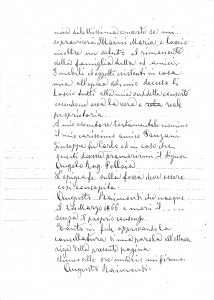 Non so poi se morrò per malattia oppure con altri mezzi, nel qual caso, del brutale atto che da me starò per compiere, o di già eseguito, domando anzitutto perdono alla mia dilettissima consorte, se mi sopravviverà, Marini Maria, e lascio inoltre un saluto al rimanente della famiglia tutta ed amici.