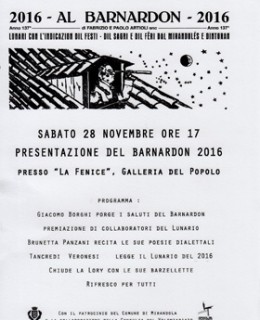 “Av comunic che st’ann l’è l’ultm’ann ca dascuremm ad taramot, da statr’ann as volta pagina. Finito o non finito al dop taramot, a nin dascurarem più. As turnarà a dascorar dil capacità dla nostra brava gent, a s’andrà a vedar quel chi faran ad bon, as sarcarà al difet sol par far un petegolez al’antiga; as turnarà a far il prevision meteo e meteopolitichi par tutt l’ann. Al Barnardon al documentarà sol l’otimismo.”…….
