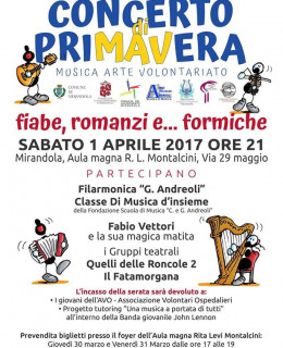 Si intitola “Fiabe, romanzi e…formiche” il Concerto di Primavera che si svolgerà a Mirandola sabato 1° aprile, presso l’Aula Magna Montalcini, alle ore 21. Come da tradizione la stagione primaverile si apre con questo appuntamento, da sempre occasione in cui musica, arte e volontariato trovano spazio per proporre una piacevole serata a scopo benefico. Quest’anno [...]