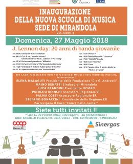 Inaugura la nuova scuola di musica di Mirandola Domenica 27 maggio, in via Fermi 3 a Mirandola (MO), sarà inaugurata la nuova sede mirandolese della scuola di musica della Fondazione "Carlo e Guglielmo Andreoli". Alle ore 12.00 avrà luogo la cerimonia d'inaugurazione alla presenza del Presidente della Regione Emilia-Romagna Stefano Bonaccini e degli assessori regionali [...]