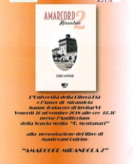 Sarà presentato venerdì 30 novembre a Mirandola, alle ore 17.30, presso l’auditorium delle scuole medie “Montanari” (via Nuvolari), il volume promosso dall’Auser intitolato “Amarcord Mirandola 2”. L’autore, Quirino Mantovani, dialogherà con Fabio Montella, direttore dell’Indicatore Mirandolese. Seguirà un brindisi. L’iniziativa si inserisce nell’ambito dell’Università della Libera Età, organizzata da La Zerla col patrocinio del Comune [...]