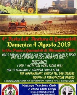 Torna la Sagra della Madonna della Neve di Quarantoli Da venerdì 2 a lunedì 5 agosto 2019 si terrà la tradizionale sagra di Quarantoli, evento organizzato dalla Pieve di Santa Maria della Neve con il patrocinio del Comune di Mirandola ed il supporto della Polisportiva Quarantolese. Venerdì 2 agosto alle ore 18.00 è prevista un'esibizione [...]