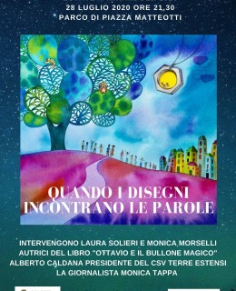 "Quando i disegni incontrano le parole" Martedì 28 Luglio, alle 21,30, nel" Parco di Piazza Matteotti a Mirandola presentazione del libro "Ottavio e il bullone magico" ed esposizione delle tavole illustrazioni. Al termine dell'evento le tavole illustrazioni saranno esposte nella "Bottega " di Giorgio Morselli in Via Volturno a mirandola
