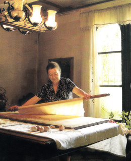 Sul tagliere disponete la farina a fontana. Dentro ad una scodella rompete un uovo per volta poi, se è perfetto (cioè se non è andato a male; in dialetto un uovo marcio è chiamato éndas), mettetelo…..