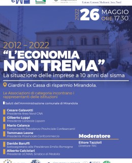 Si avviano alla conclusione a San Felice sul Panaro le celebrazioni per il decennale del sisma. Sabato 28 maggio, alle 9 biciclettata nelle frazioni in collaborazione con Croce Blu di San Felice, Medolla, Massa Finalese e Protezione civile. In caso di pioggia la biciclettata sarà annullata. Alle 15 e alle 17 cantieri aperti con visite [...]