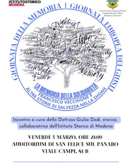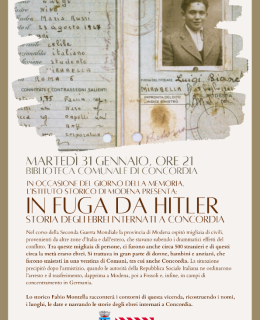 CONCORDIA CELEBRA IL GIORNO DELLA MEMORIA MARTEDÌ 31 GENNAIO RACCONTANDO LA STORIA DEGLI EBREI INTERNATI NELLA BASSA MODENESE Il Comune di Concordia celebra il Giorno della Memoria martedì 31 Gennaio 2023 alle ore 21 presso la Biblioteca comunale con la presentazione da parte dello storico Fabio Montella di una ricerca dedicata alla storia degli ebrei [...]