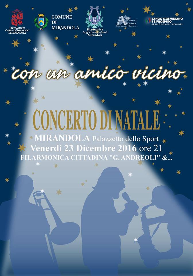 L’iniziativa nasce dalla collaborazione tra il Comune, la Fondazione Cassa di Risparmio di Mirandola e la Fondazione scuola di musica “Andreoli”. Come spiega il direttore della Filarmonica, Gianni Malavasi, «quest’anno, più che mai, il concerto si distingue per il carattere fresco e vivace dei brani, per lo spirito swing e jazz di sottofondo ma sempre con un’attenzione al popolare. Abbiamo pensato di far trascorrere una piacevole serata musicale… “con un amico vicino”.