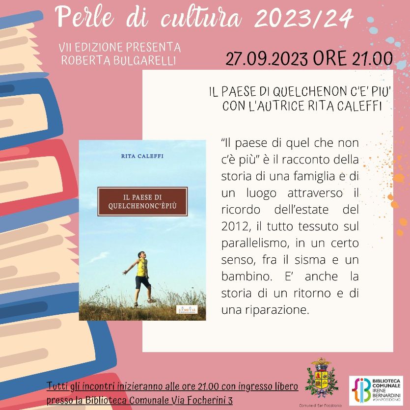 Per la rassegna culturale “Perle di Cultura” organizzata dall’Assessorato alla cultura del Comune di San Possidonio, giunta alla VII Edizione presentata da Roberta Bulgarelli.