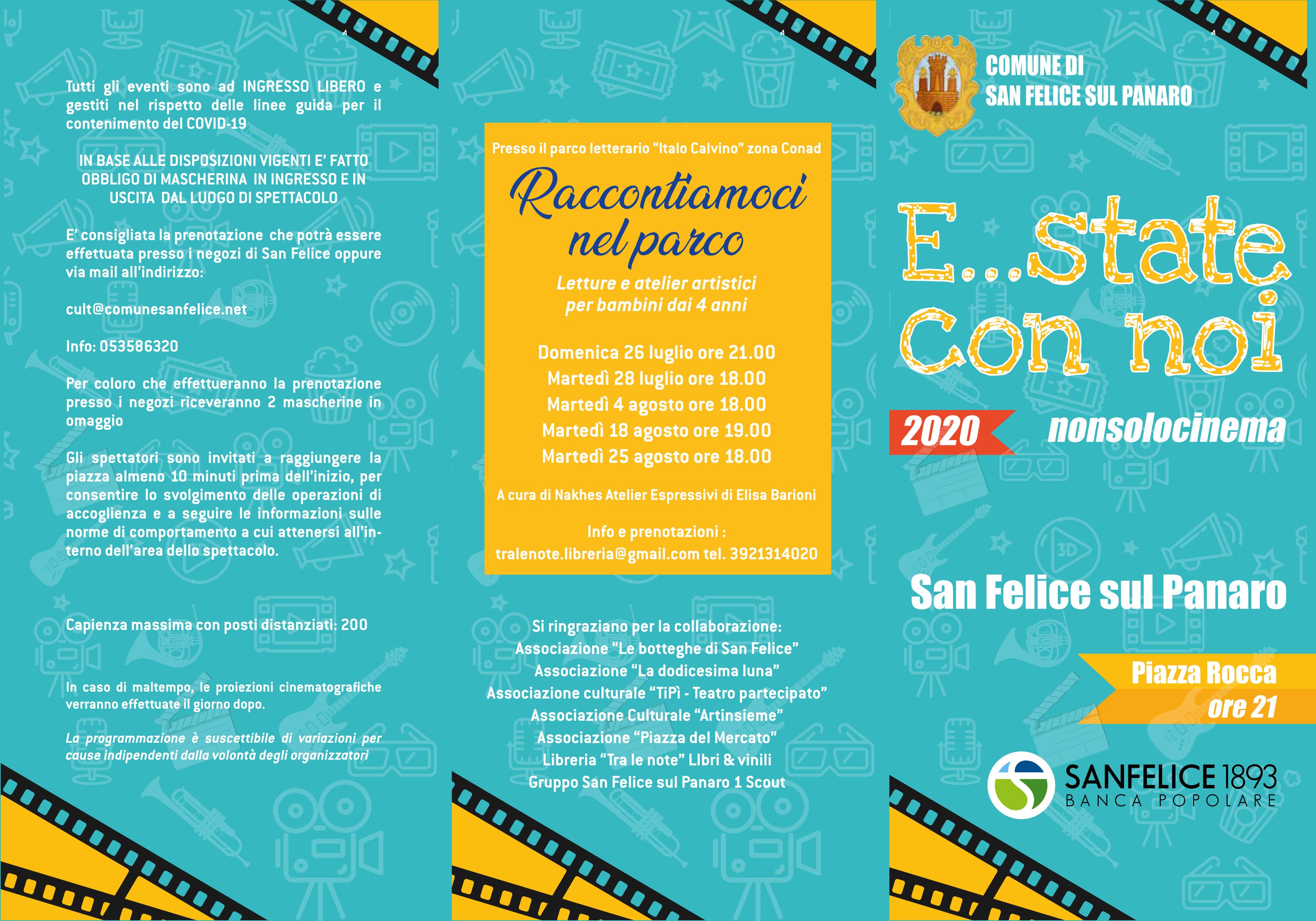 L’estate a San Felice sul Panaro non è solo in piazza della Rocca. Martedì 28 luglio alle 18, prosegue infatti presso il parco letterario “Italo Calvino” (zona Conad), “Raccontiamoci nel parco”, letture e atelier artistici per bambini dai quattro anni a cura di Nakhes Atelier Espressivi di Elisa Barioni.