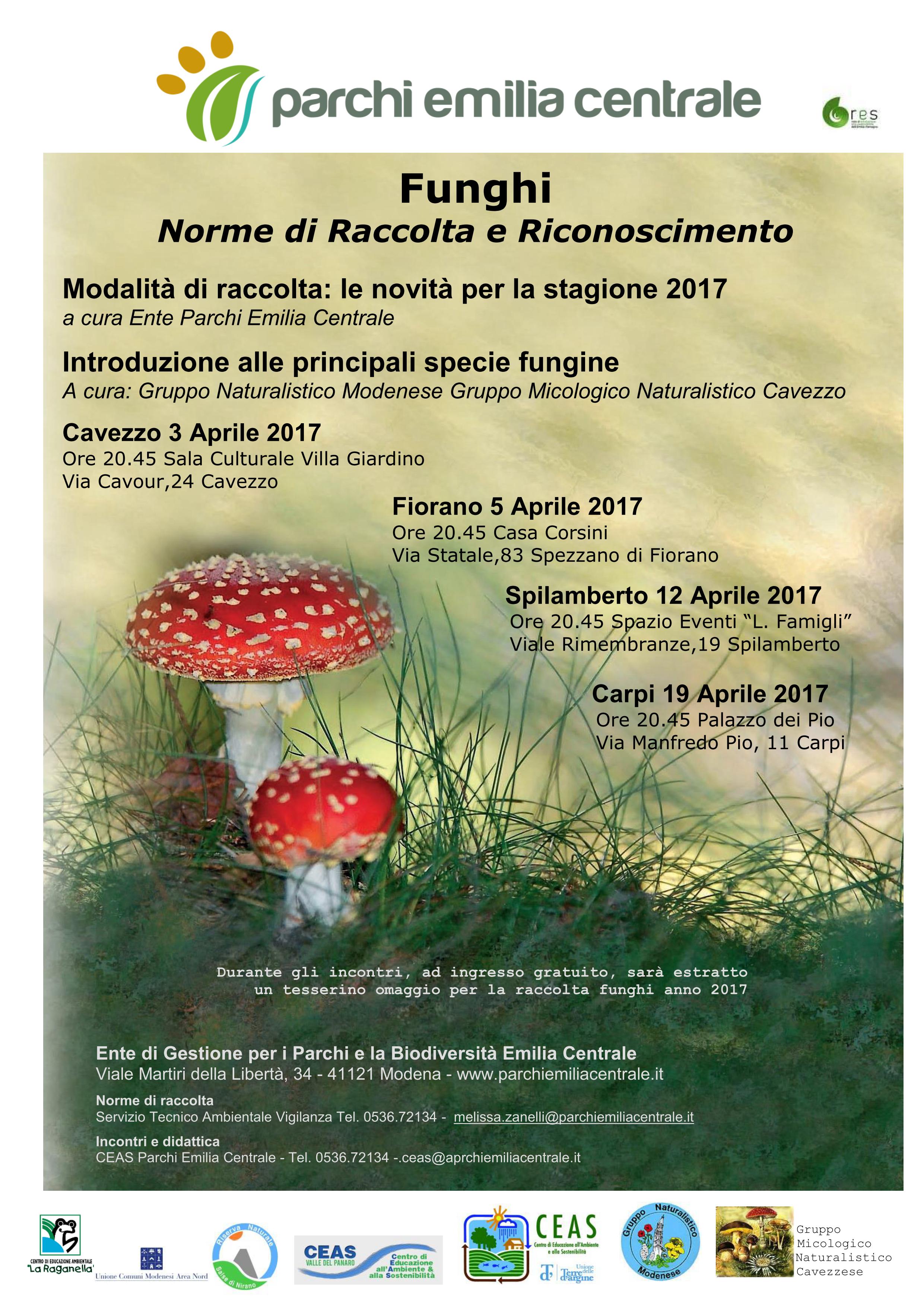 Lunedì sera 3 aprile alle ore 20.45 a Cavezzo in via Cavour n.24 presso la sala culturale di Villa Giardino, si svolgerà il primo incontro di un ciclo di 4 appuntamenti d’informazione micologica rivolta alla cittadinanza per la corretta raccolta dei funghi nel rispetto degli ecosistemi e della normativa vigente, organizzati dall’Ente Parchi Emilia Centrale.