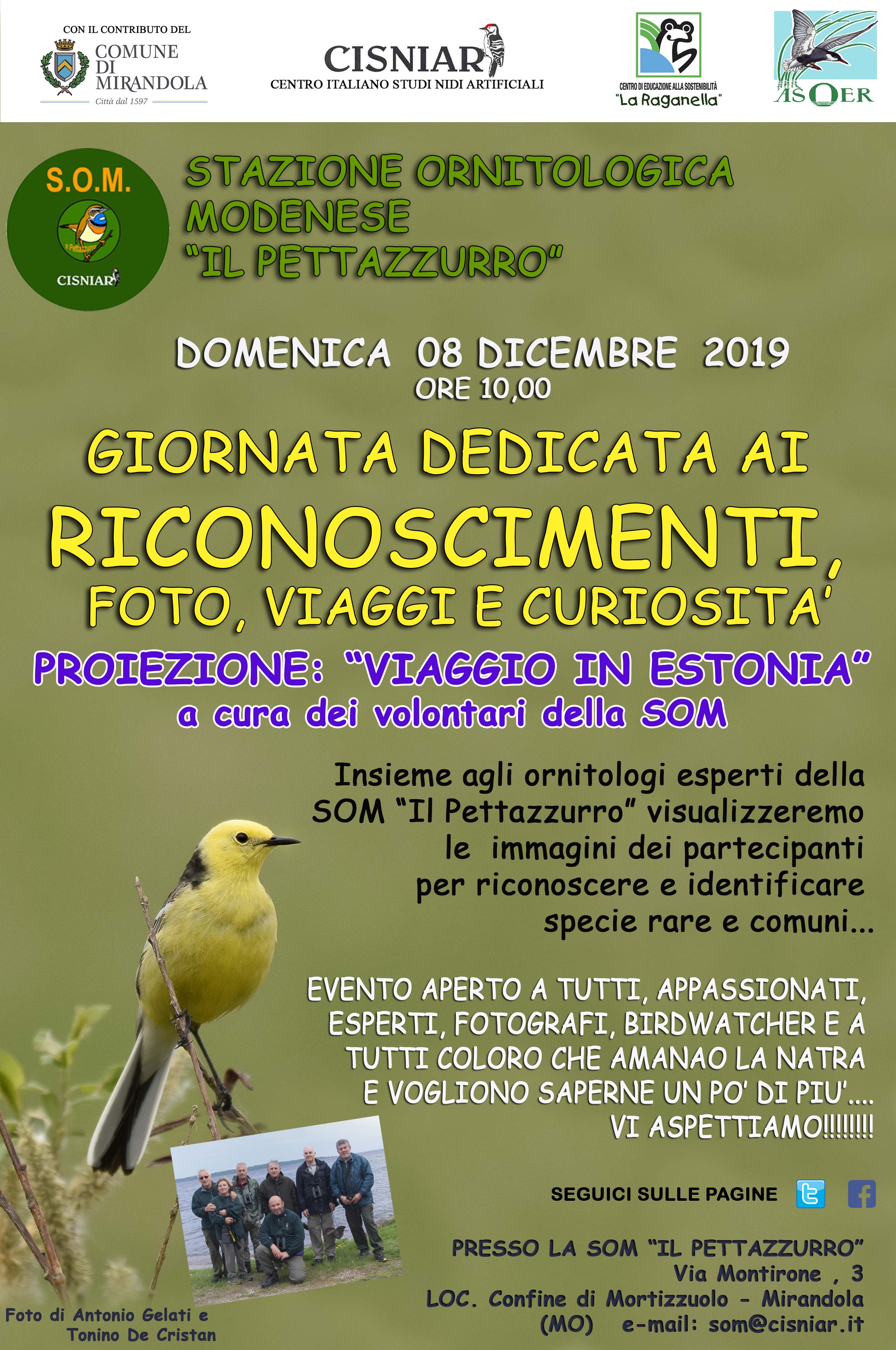 La S.O.M invita alla giornata dei “Riconoscimenti, foto e Viaggi”, in programma per DOMENICA 08 DICEMBRE 2019 alle ore 10,00, nel corso della mattinata sarà possibile visualizzare le immagini dei partecipanti per riconoscere e identificare le specie ritratte, al termine verrà proiettato un bellissimo audiovisivo sul viaggio in Estonia organizzato dai nostri volontari a maggio 2018.